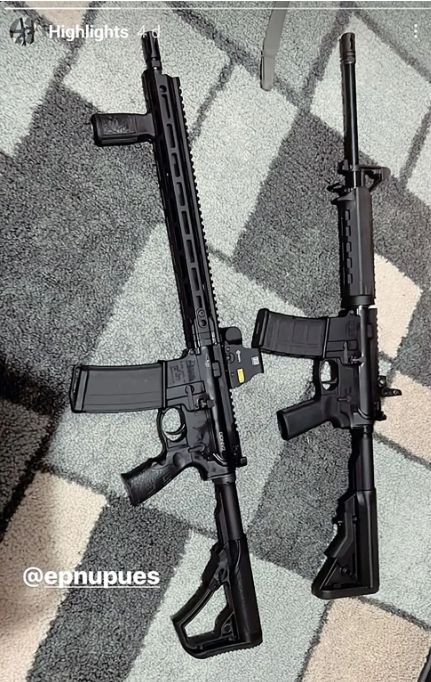 Același cont a distribuit o fotografie cu două puști așezate una lângă alta în poveștile sale. Într-un mod bizar, contul a etichetat un alt utilizator din fotografie.