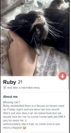 Mai mult, un prieten i-a sărit în ajutor, modificând propriile profiluri de întâlniri pentru a o ajuta în căutarea pisicii plecată de acasă.