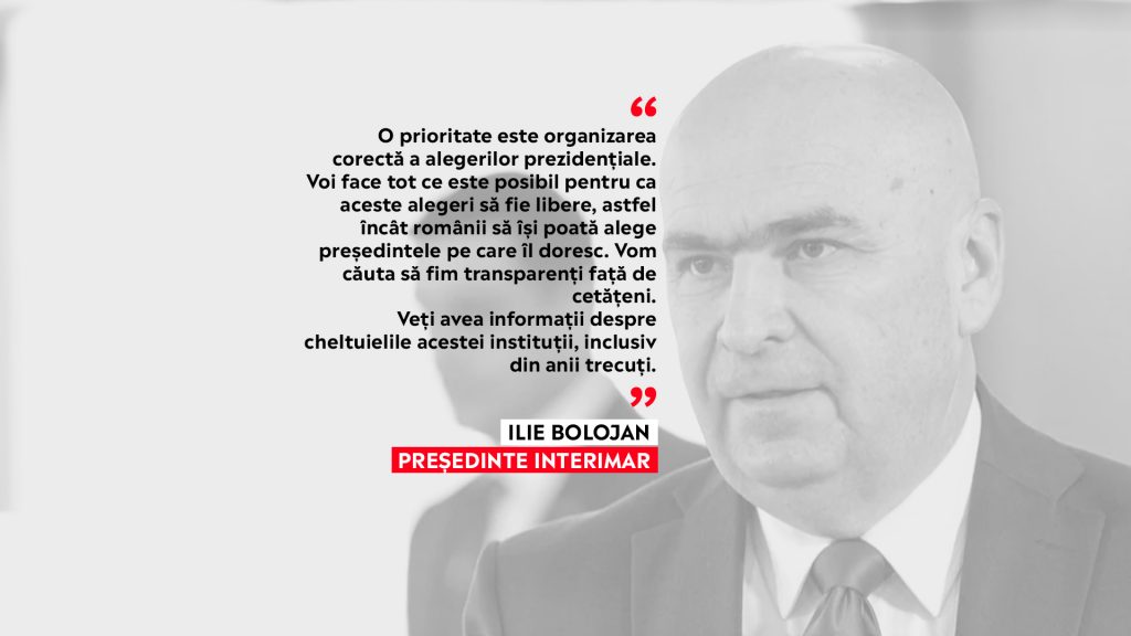 „O prioritate este organizarea corectă a alegerilor prezidențiale, acest lucru nu ne definește doar ca democrație ci crrează premisele ca toate instituțiile să devină stabile. Voi face tot ce este posibil pentru ca aceste alegeri să fie libere, astfel încât românii să își poată alege președintele pe care îl doresc. Vom căuta să fim transparenți față de cetățeni. Veți avea informații despre cheltuielile acestei instituții, inclusiv din anii trecuți”, a spus Ilie Bolojan.