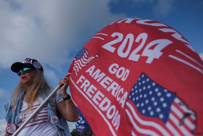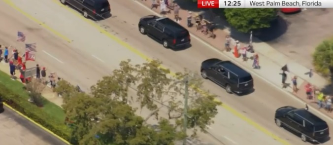 Traseul său spre aeroportul din Palm Beach a fost mărginit de susținători care au putut fi auziți strigând și aplaudând la trecerea cortegiului său de mașini.